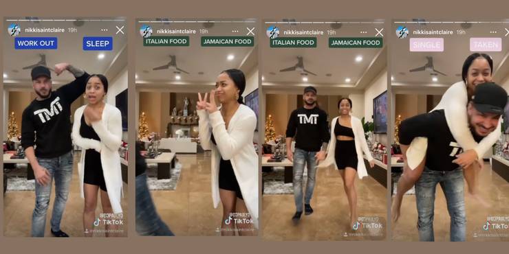 A rövid videó folytatásában további vicces tényeket osztottak meg a párról. Nem meglepő módon Pauly megmutatta izmait, mivel az edzést választotta az alvás helyett. Míg a másik oldalon Nikki úgy tett, mintha ásítana, miközben úgy tett, mintha azt sem tudná, mi az az edzés. Pauly gyorsan megragadta a lányt, és magával húzta az edzőterembe. Kettőjük útjai szétváltak, mivel Pauly az olasz ételt választotta, míg Nikki a jamaikai ételt. A pár azzal fejezte be a videót, hogy imádnivalóan együtt mentek a “foglalt” oldalra, amikor megkérdezték, hogy szingli vagy foglalt.